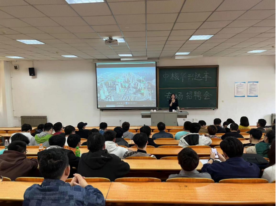 2023年4月19日, 中核華興達(dá)豐攜手沈陽大學(xué)、沈陽城市建筑學(xué)院共同舉辦了春季校園專場(chǎng)宣講會(huì)及實(shí)習(xí)雙選會(huì),本次招聘由中核華興達(dá)豐工程技術(shù)研發(fā)總監(jiān)金久富、人事行政總監(jiān)蔡寅宣講。 宣講會(huì)上,金總、蔡總以PPT的形式就中核華興達(dá)豐的企業(yè)介紹、福利待遇、企業(yè)文化、項(xiàng)目業(yè)績(jī)、招聘流程等方面向同學(xué)們做了簡(jiǎn)單介紹,并通過現(xiàn)場(chǎng)互動(dòng)解答同學(xué)們的問題。