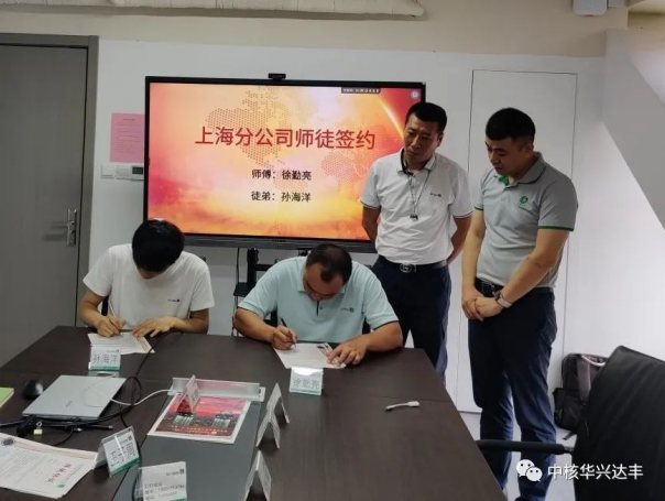 2023年7月24日上午,中核華興達豐華東區(qū)域在上??偛拷M織2023年應屆大學生“師徒協(xié)議”簽訂儀式。共有4對師徒現(xiàn)場簽約,中核華興達豐華東區(qū)域總監(jiān)、重慶大峰副總經(jīng)理鄭興瑞,中核華興達豐人事行政總監(jiān)蔡寅受邀參加。儀式開始后,首先由中核華興達豐華東區(qū)域總監(jiān)、重慶大峰副總經(jīng)理鄭興瑞介紹此次簽約儀式目的和師徒結(jié)對的理念傳承,并向在座大學生介紹華東區(qū)域組織架構、各分公司概況、工程業(yè)績、企業(yè)文化理念等。隨后由在座大學生依次進行了自我介紹,分享了個人經(jīng)歷以及對未來職業(yè)規(guī)劃的展望。儀式上,鄭總宣讀了公司帶徒制度,明確師徒雙方職責、培訓目標、管理措施、考核與獎勵,并宣讀師徒結(jié)對結(jié)對名單: